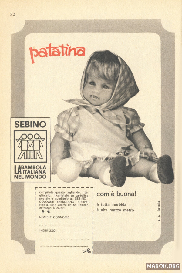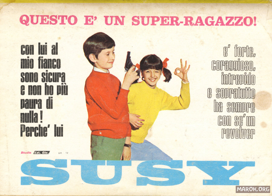 Poi, sempre tra le pubblicità, ci sono REVOLVER (su Topolino! Giuro!!!) e bambole associate a slogan del tipo: "è completamente flessibile e compie tutti i movimenti desiderati, ha un visino molto dolce ed un poco birichino. I suoi capelli sono rossi".