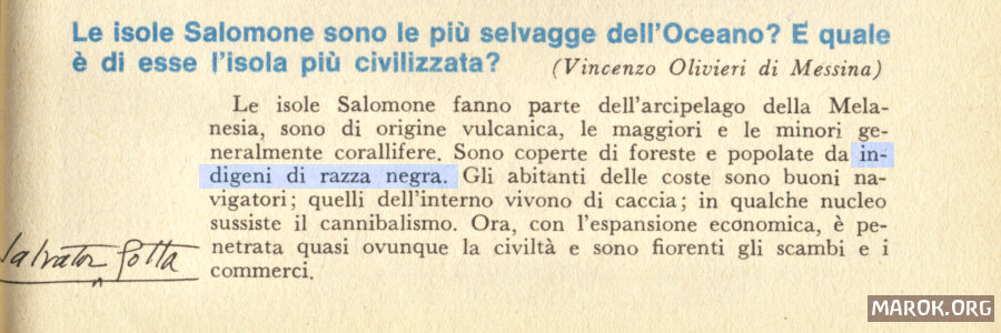 Per finire, inserti di geografia in cui si spiega come nelle isole Salomone ci siano indigeni di RAZZA NEEEEEEEGRA!