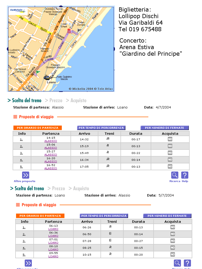 mi fece constatare che al ritorno, in partenza da Loano, non c'erano treni né pullman fino alle sei del mattino.