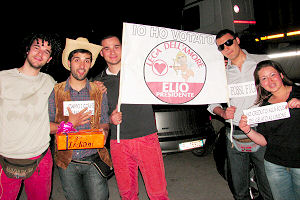 mentre canta il Vitello con gli Uomini col borsello sul palco della