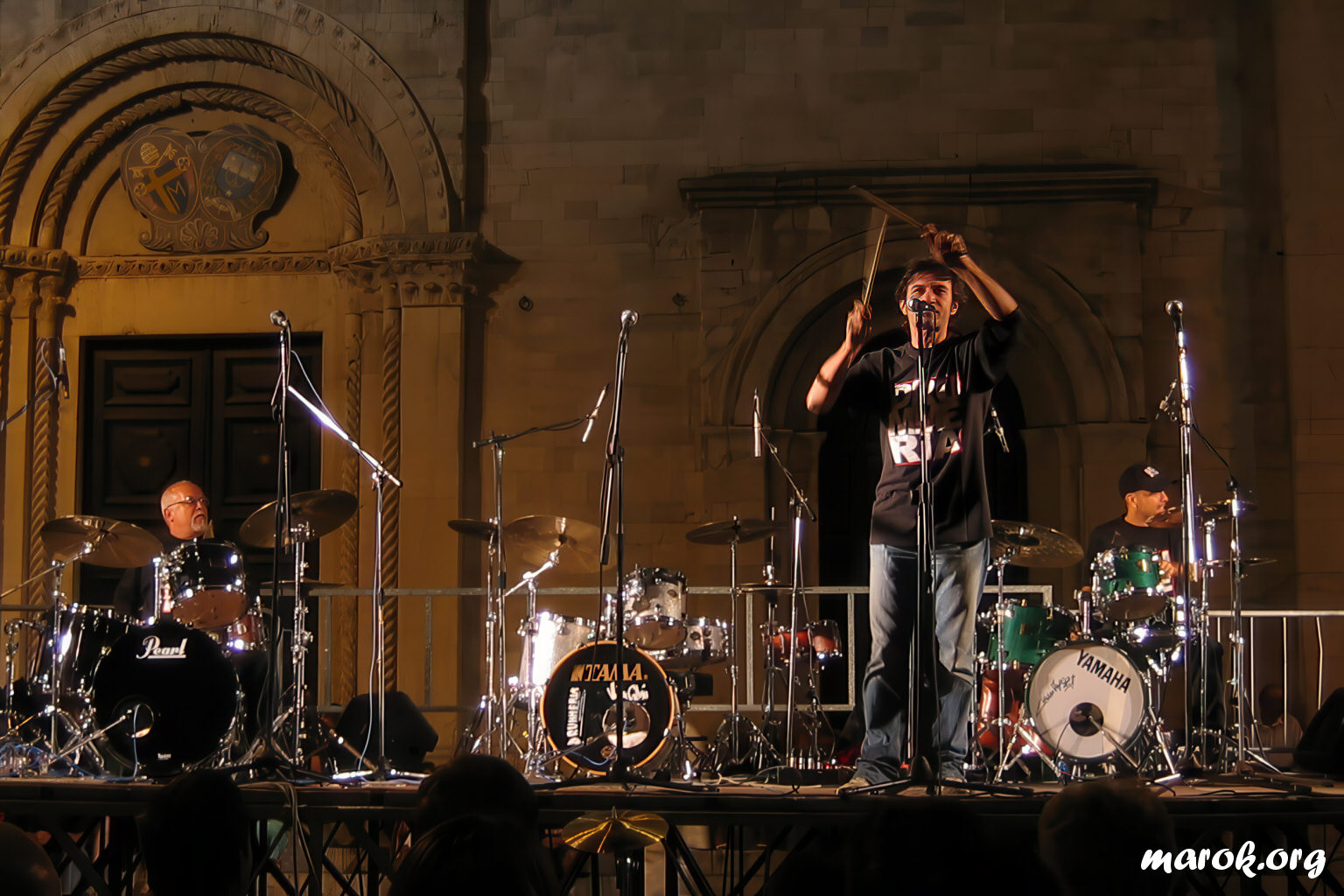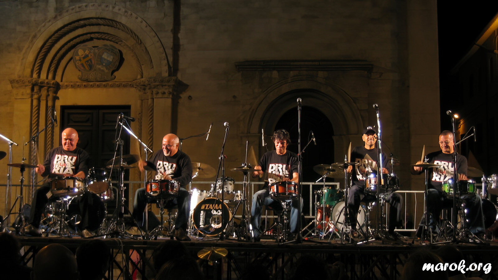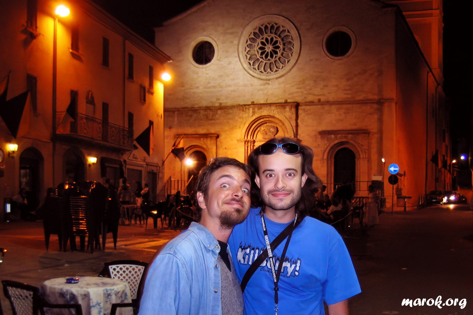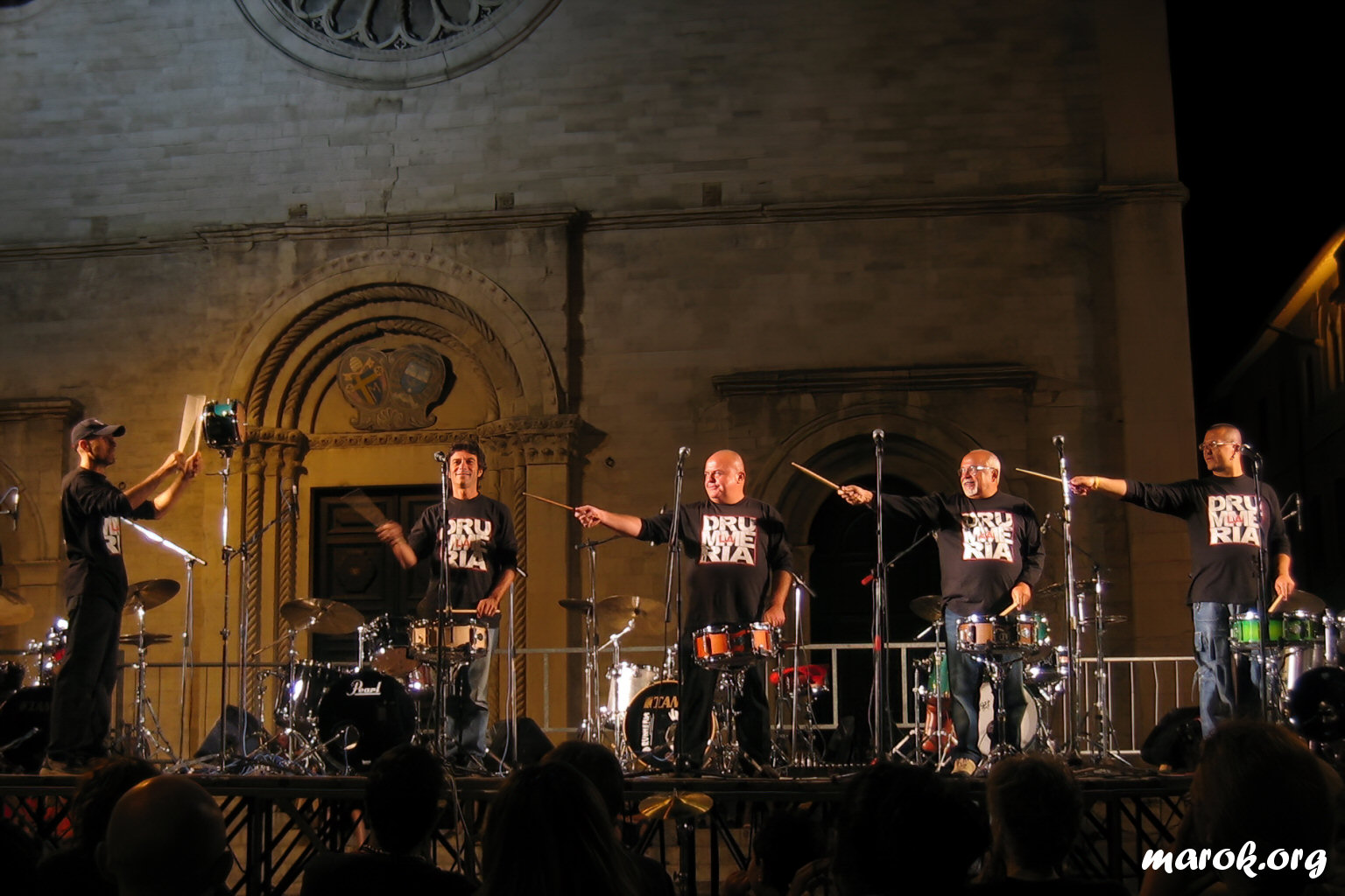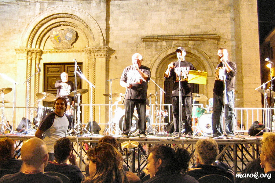 Anche il palco della Drummeria aveva il suo perché: era enorme ed aveva come sfondo la facciata di una chiesa medievale. Sotto il palco un agglomerato di tavolini, tra i quali scorgemmo due volti noti: Duccio e la Cicalona.
