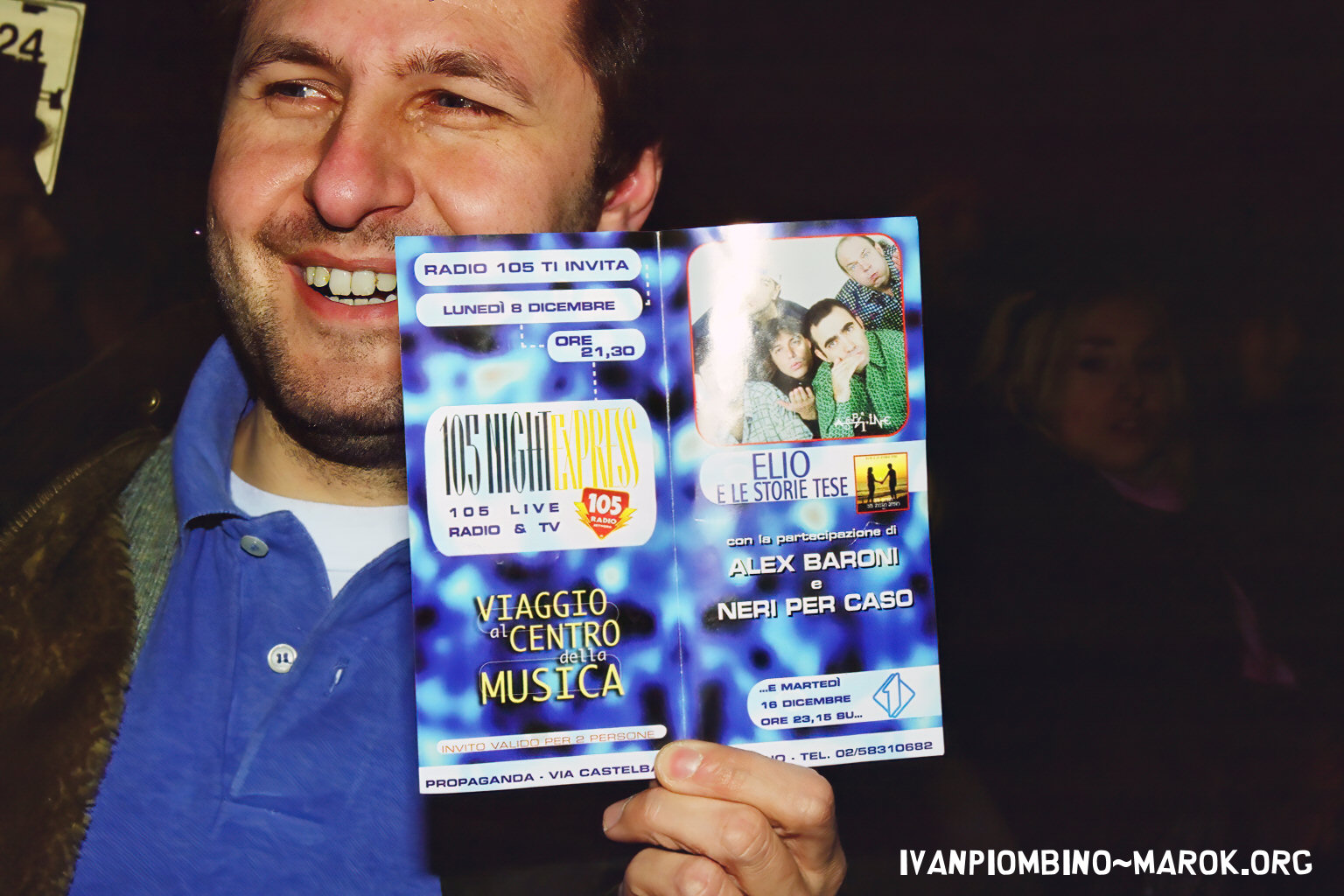 il Favone almeno il doppio. E quel tour che mi ero perso era stato meraviglioso, indimenticabile, uno dei migliori da quando ascolto Elio e le Storie Tese. Ogni volta che c'era una data vicina a casa e io non potevo andare, mi mangiavo le palle, poi mi telefonava il Favone e mi raccontava tutto il concerto per filo e per segno, ridendo come un disperato... e io sboccavo le palle per poi mangiarmele di nuovo.