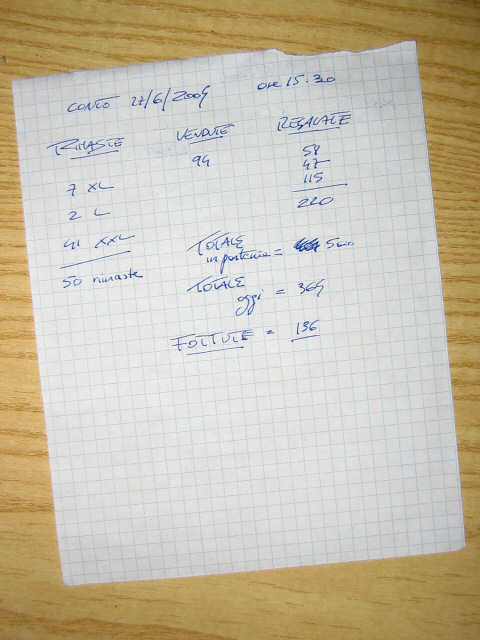 In ogni caso il conteggio delle magliette fu estremamente veloce.