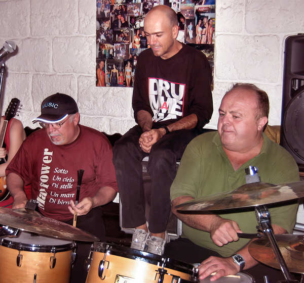 E diedero anche questa volta spettacolo, suonando in sincronia perfetta le loro cinque batterie e poi fraseggiando frizzanti virtuosismi appropiandosi ciascuno di un pezzo della stessa batteria.