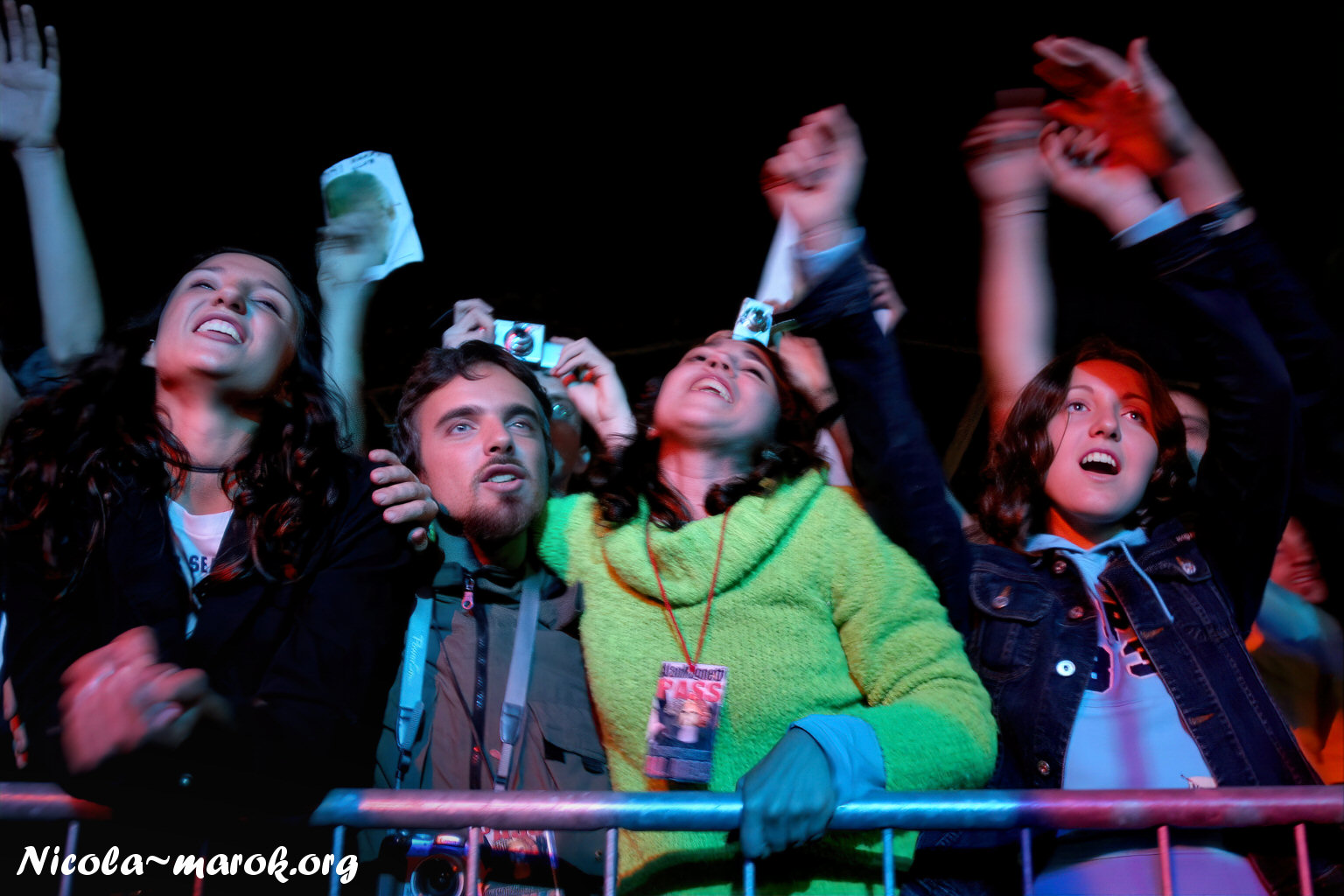 Il resto della folla era un agglomerato di fan delle Vibrazioni, un popolo simile al nostro, ma portatore di due segni particolari: cinque anni in meno pro capite e, per i tre quarti, pheega.