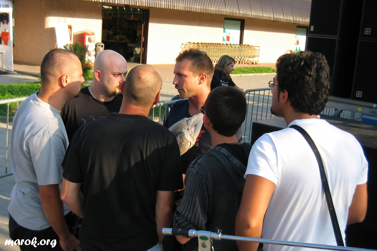 un palco, conficcato in modo completamente illogico nel centro del parcheggio di un ipermercato.
