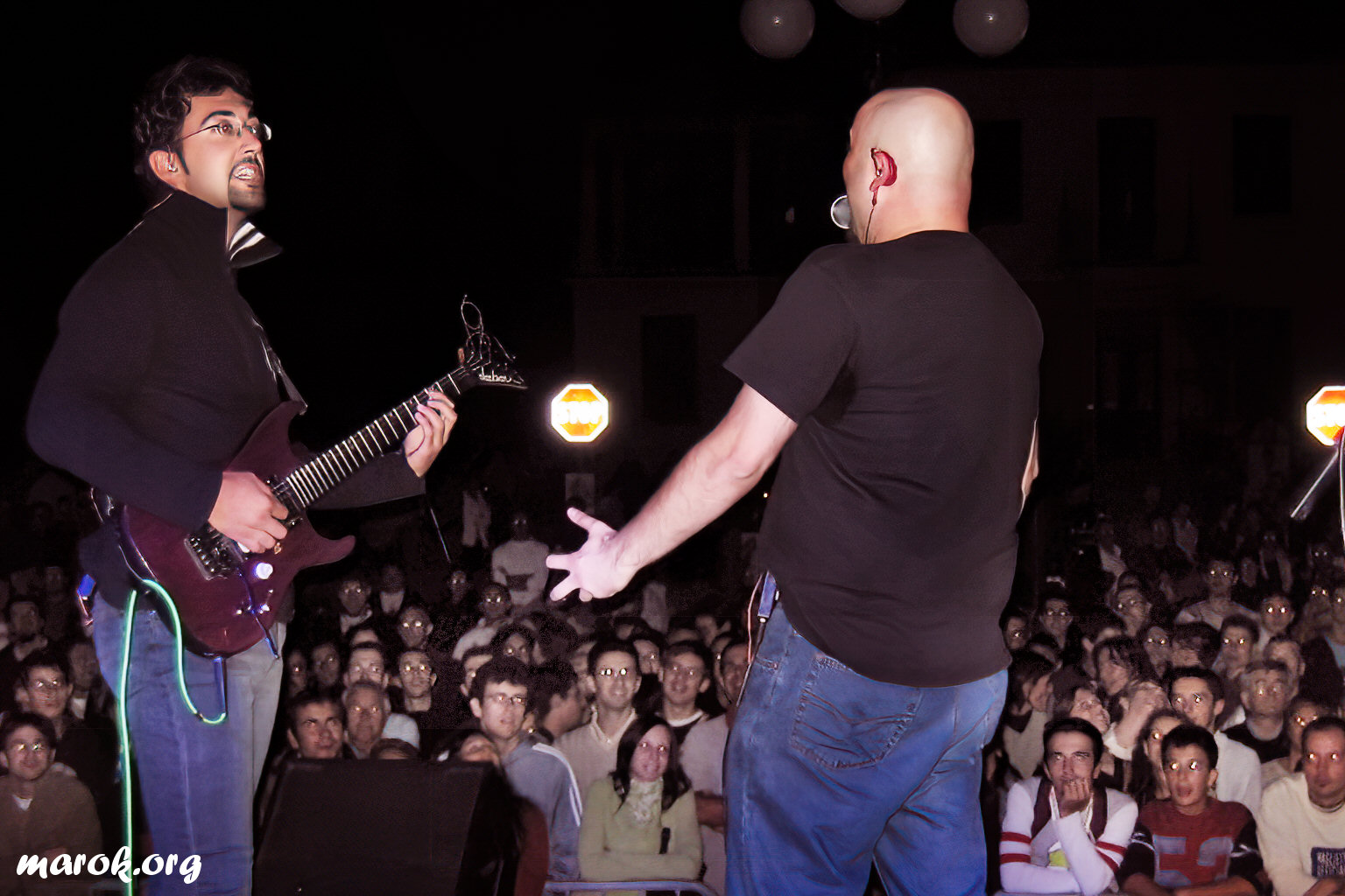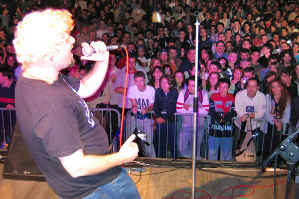 Il Favone Grassone sul palco assieme ad Alan Magnetti prima del concerto di Elio e le Storie Tese. Sarebbero bastate due troie bisessuali che mi facessero un pompino e la raffinatezza culturale della giornata sarebbe stata perfetta! Peccato.