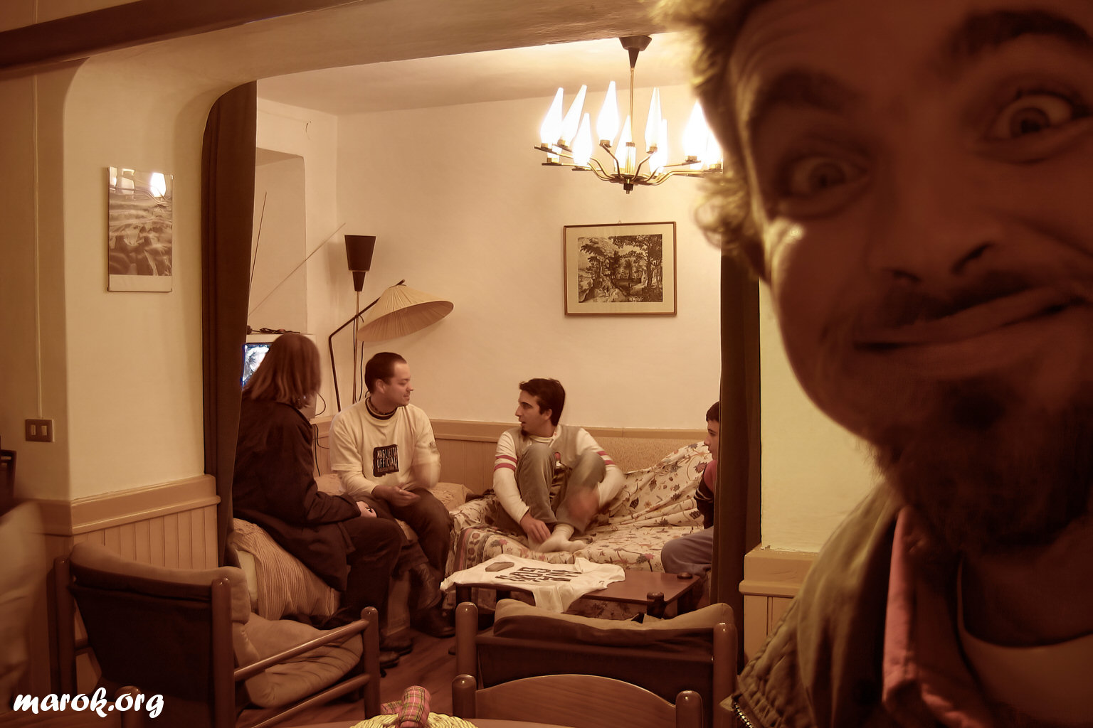 Dagarlass ci rivelò che i due divani che c'erano in soggiorno, se opportunamente trasformati, potevano dare luogo a tre posti letto e... purtroppo, mentre ce lo spiegava, si sdraiò su uno dei divani e si addormentò.