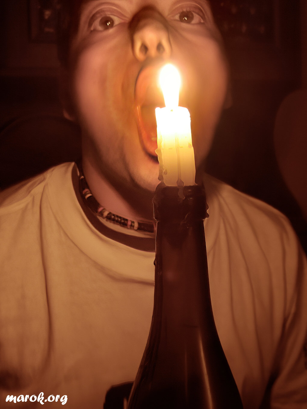 però spegnendo tutte le luci eccetto una candela, perché Alan diceva che