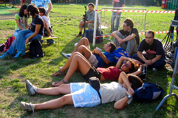 Feci un rapido giro nel cortile per collezionare immagini di sguardi atterriti, scorgendo tanti volti noti: allo stand dei brulé l'ottimo Cops e, svaccati per terra, gli irriducibili, alias