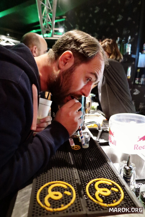L'intera scena è durata una ventina di minuti, durante i quali la giovane malcapitata, che NON si poteva allontanare perché obbligata a stare al bancone, si è dovuta ascoltare un flusso ininterrotto di cazzate che avrebbe steso chiunque, compresi i sordi e quelli che non capivano l'italiano. Vedendo me che ogni tanto passavo e scattavo una foto, probabilmente ha pensato di essere su Scherzi a parte. Comunque, il clou si è raggiunto quando Schope le ha mostrato una PIAGA da USTIONE... solo a quel punto abbiamo deciso di trascinarlo via. E così, nessuno l'ha picchiato... sarà per la prossima.