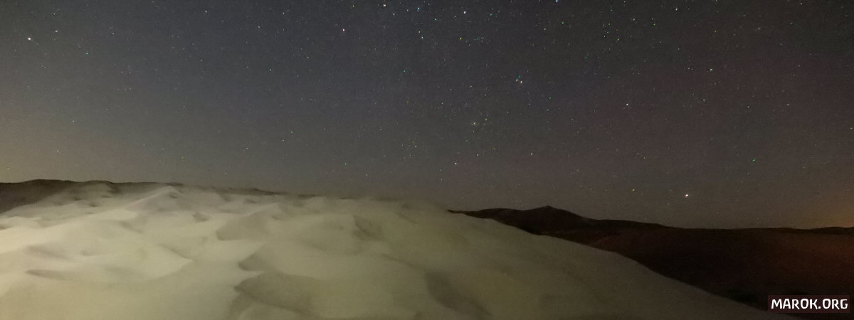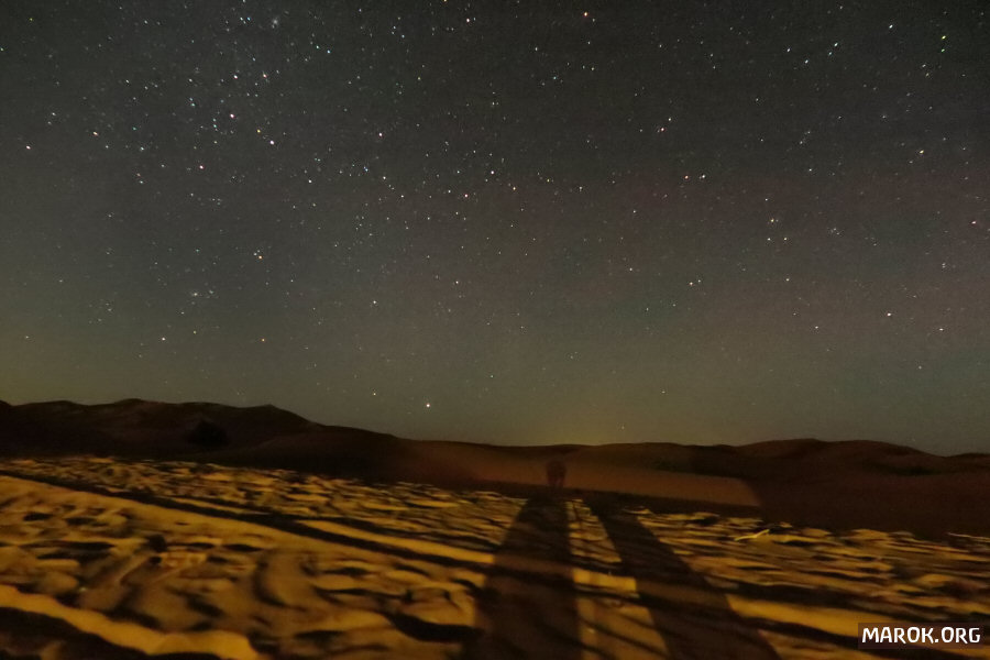 Invece, la terza foto alle stelle nel deserto, poteva essere DAVVERO l'ultima foto della vacanza: a causa della lunga esposizione e del "cavalletto" che era un candelabro di dieci centimetri appoggiato sulla sabbia, nell'obiettivo è entrato il SAHARA. Non tutto, in realtà: qualche granellino è rimasto fuori.