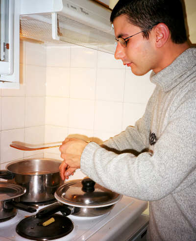 Nico stava facendo la colazione e lavando i piatti per tutti.