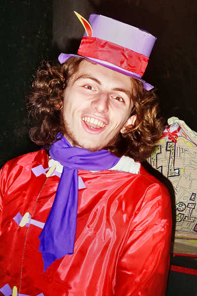 Non riuscivamo a capire da che cazzo si fosse vestito, aveva un mantello rosso, un cilindro viola e trainava un carro di cartone. Ci spiegò con fare sicuro: "Sono vestito da