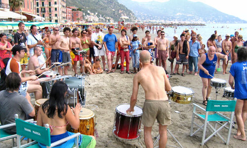 Là trovai Massimo, che si era messo in testa di fare le cover subacquee della Drummeria e si allenava a Trunkatu percuotendo il mare.