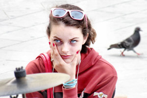 Sulla destra del mixer, la giovane