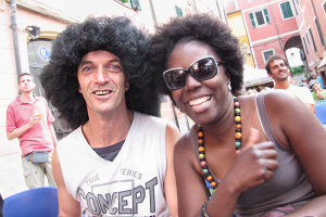 Al banchetto del PercFest, intanto, vendevano delle parrucche afro... oppure, a scelta,