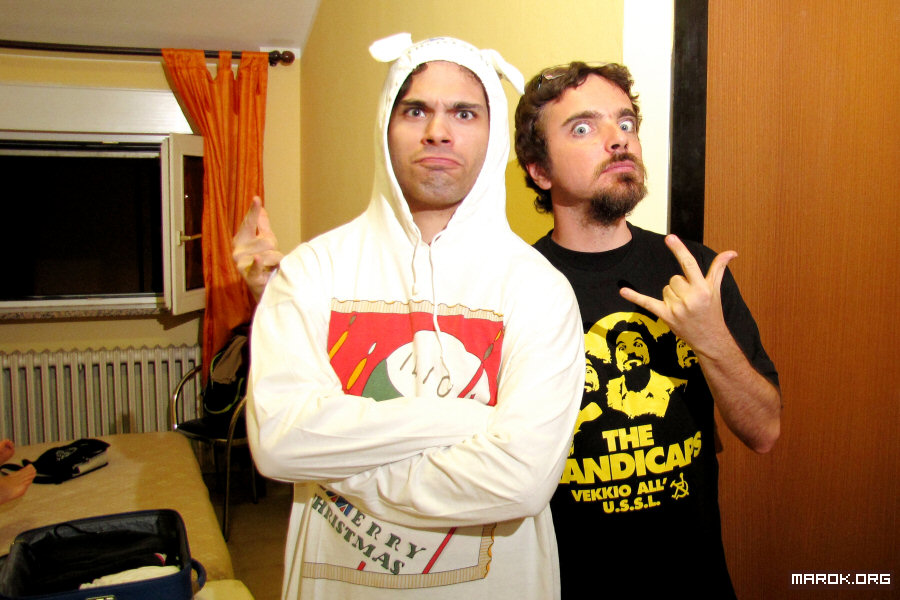 Ci mettemmo fuori a leggere i menu, il gestore ci vide, ci venne incontro, e Klàpač disse: "Ma nooo ma potaaaaaa ma daiiiiiii ma volete davvero entrare qua? Ma che paccoooooo! Andiamo da un'altra parteeeeeeee!!!"