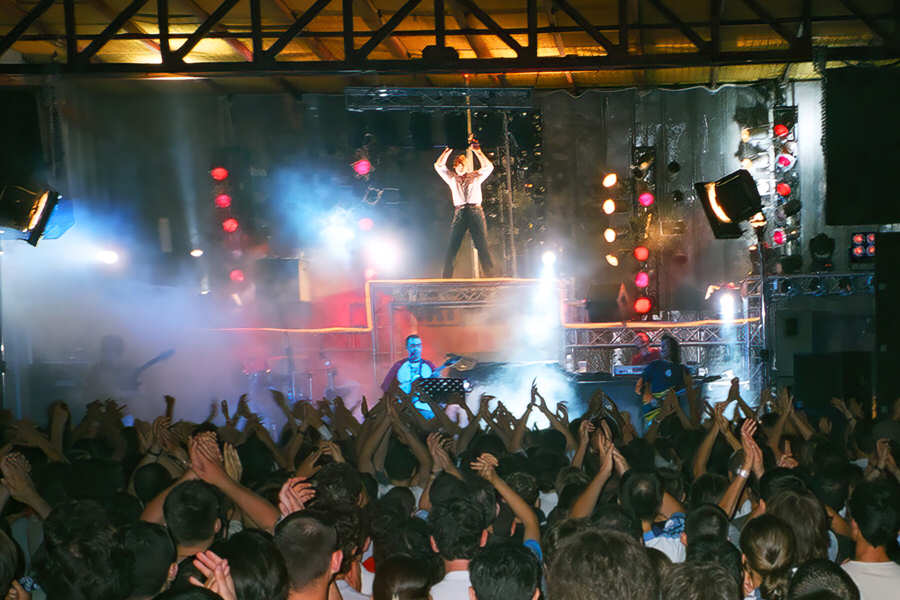 Faso e Christian stavano già provando sul palco. Il suono non era un granché: sopra il palco e su gran parte dello spazio di fronte alle casse c'era un'enorme tettoia che provocava un orribile effetto botte.