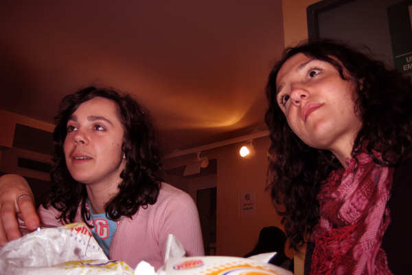 Bah, sarà il McDonald's, sarà il mio giovane corpo, sarà la pioggia, saranno i quattordici chili ma, nonostante l'ora preantropomorfa, le giovani donne ci avevano già telefonato: