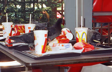 Nel tavolo a fianco, un gruppo di piccioni aggrediva famelico gli avanzi di clienti