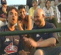 Per non perdere i posti (l'esperienza insegna!), ci congedammo dal fresco boschetto vip e ci insediammo nelle tribune, dove una telecamera di Studio Aperto ci mandò tragicamente in onda mentre tentavamo di cantare