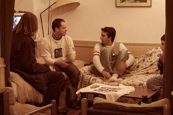 Dagarlass ci rivelò che i due divani che c'erano in soggiorno, se opportunamente trasformati, potevano dare luogo a tre posti letto e... purtroppo, mentre ce lo spiegava, si sdraiò su uno dei divani e si addormentò.